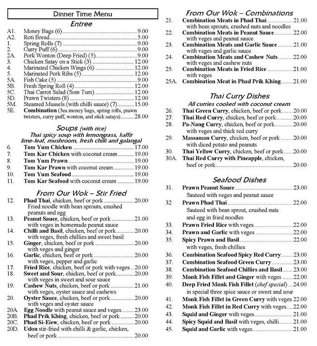 Pad Thai Restaurant Menu In Las Vegas Nevada Usa